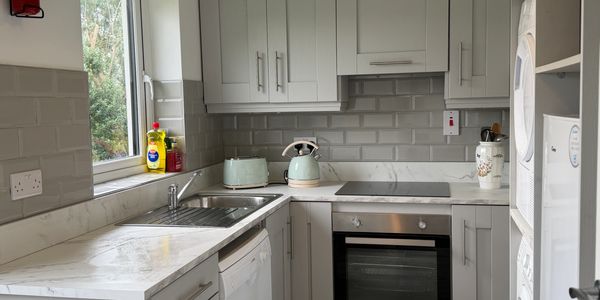 Fully renovated house with oven, microwave, dishwasher, washing machine, fridge, freezer, hob, kettle, toaster.